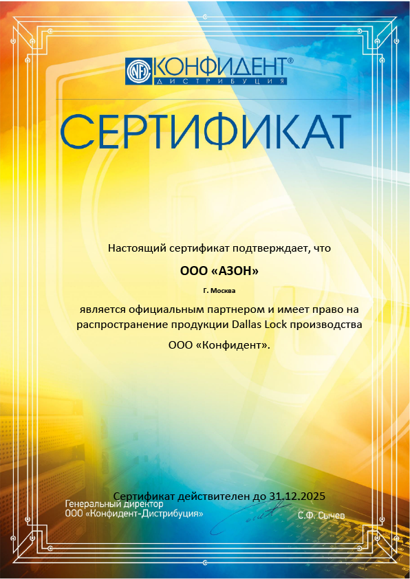 Статус официального партнёра ООО «Конфидент» по продукции Dallas Lock